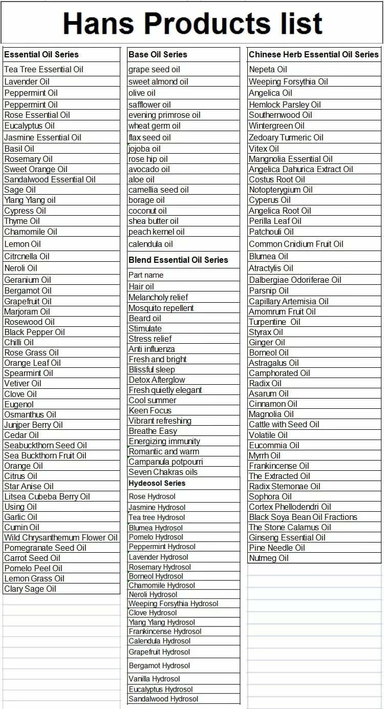 Essential oil product list horus oil wholesalers